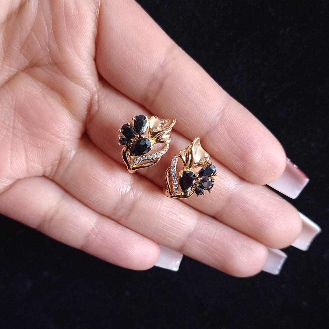 Hermosos aretes diseño flor en tono negro