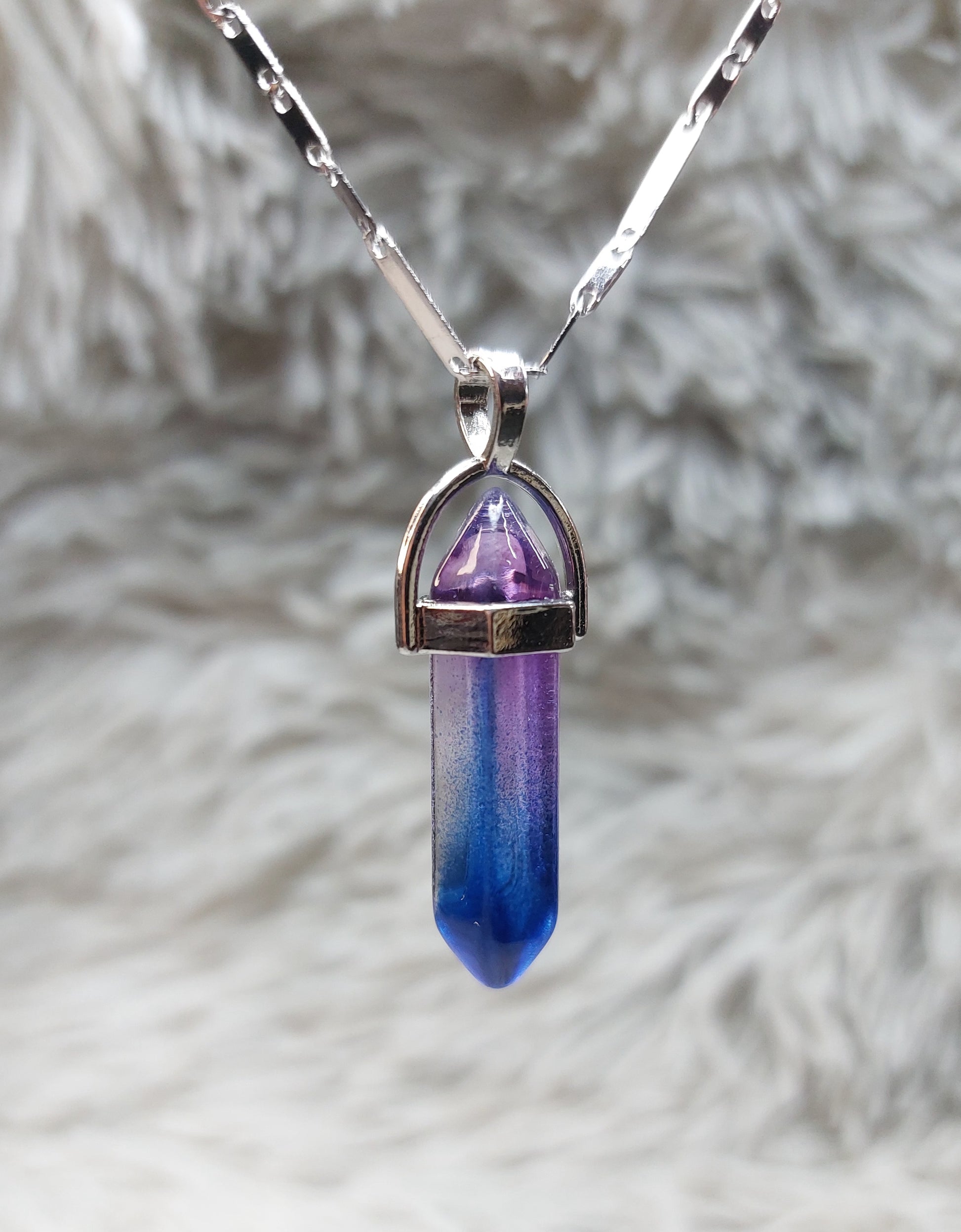 Cadena Con Dije Cuarzo Clear Azul/Morado