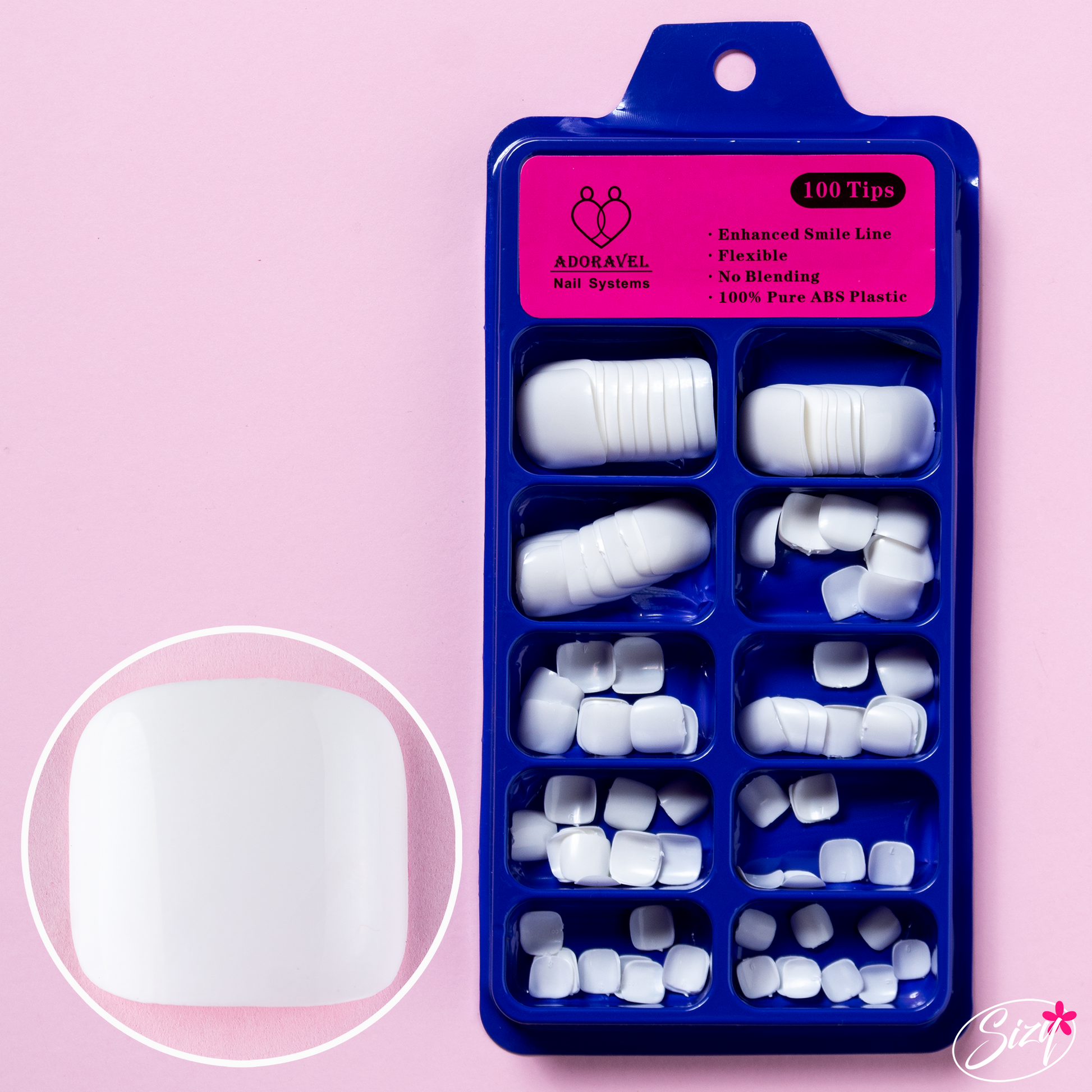 100 tips de diferente ancho en forma cuadrada